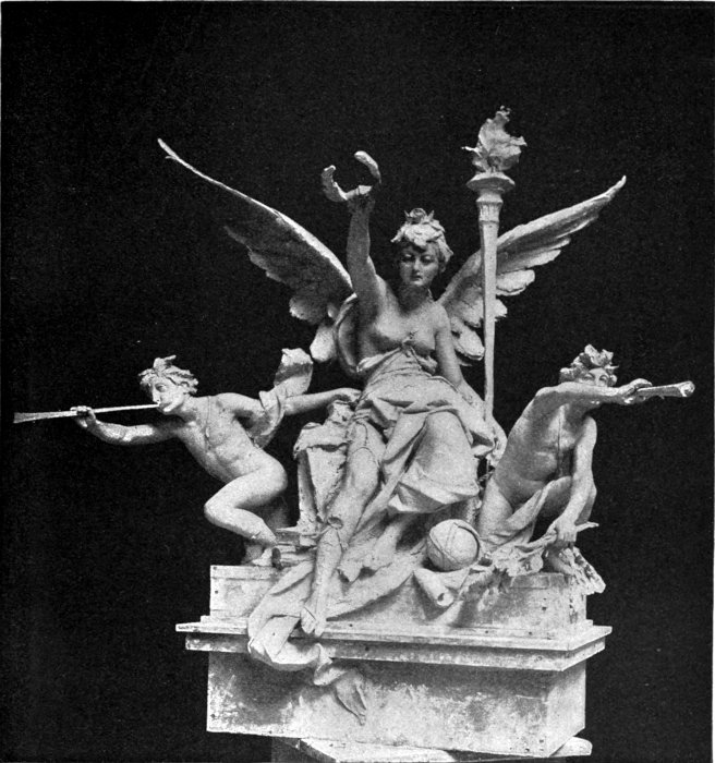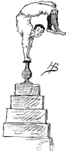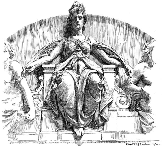 The wheel was now headed directly for Agricultural Hall, but as it came within a threatening distance, the three young women of the Zodiac family, with a single impulse, threw their globe at the wheel—at the same time uttering three shrieks that did more execution than the ball they had thrown. The ball shattered one of the towers on the Convent; but the shrieks saved the Agricultural Building, with all its priceless corn-cobs, preserved prunes, and patent harvesters.