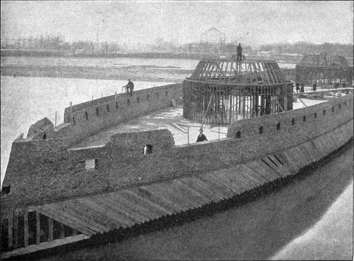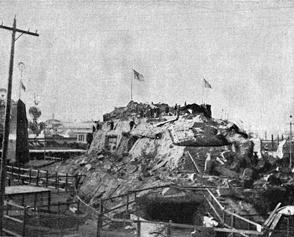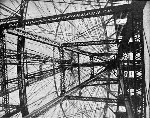 Meanwhile, an alarm had been sounded upon all the trumpets held by244 figures upon the Administration Building; telephones were at work calling aid; the Fire Queen and all the patrol-wagons were dashing to and fro; the Krupp gun was loaded and trained upon the wheel; and all was bustle and excitement.