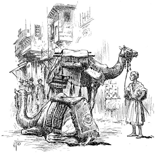After a brief glance around him, his eye caught the sign of the Bedouin encampment. Rushing toward it, he threw a twenty-dollar gold piece upon the counter, told the attendant to keep the change, and was soon in earnest conference with the Arab sheiks.