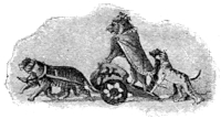Mr. Hagenbeck’s far-famed Animal Show also came in for a share of damage, the wheel crushing one corner of the menagerie, and picking up the small performing-bear in such a way that he was compelled to leap from car to car as each came upright, and walk the wheel as if it were a circus ball. He was rescued unhurt, but considerably fatigued, when the wheel finally—but it was not yet through.