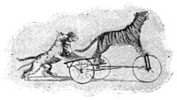 Here Professor Hagenbeck and his young men received the wheel with stern glances that even that awful monster of iron and glass found irresistible. With a few lashes of his long whip, the professor soon reduced the wheel to submission, and at the word of command it ran to its place, climbed into position, and was still. The professor immediately gave the wheel a lump of sugar from his coat-tail pocket, patted it upon the cogs, and saying, “There will be no further trouble, I think,” walked serenely back to lunch.