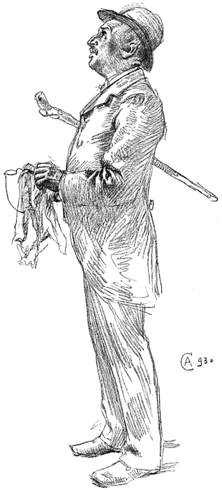 The man looked around quick, as if he was wondering what the chances were if he should run for it; but the guard laid his hand on the man’s shoulder, and the swindler then decided to brazen it out.