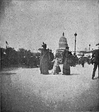 Just here, however, the wheel and Mr. Douglass caught sight of the dome of the Illinois State Building, and the iron creature turned aside with a sigh that could be plainly heard at the British Building on the lake-shore, and then ran down the Midway like a hunted stag.