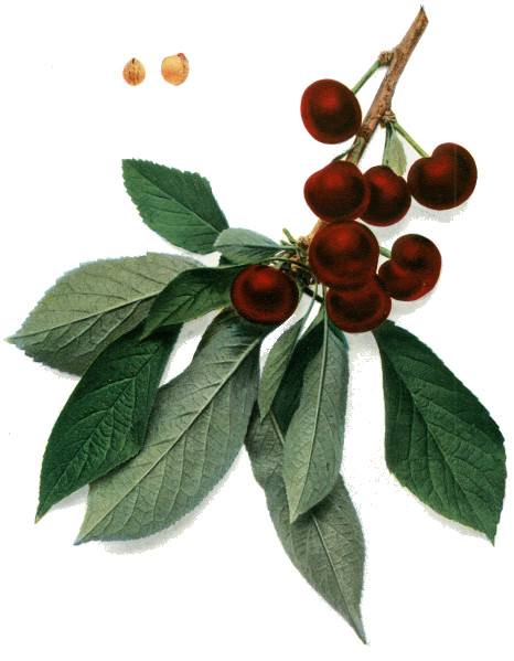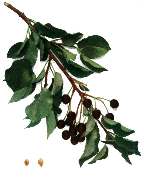 In the old herbals and pomologies much is made of the value of cherries for medicinal purposes. The fruit was supposed to be a sovereign remedy for various ailments of the digestive tract as well as for nervous disorders 6 and epilepsy. The astringent leaves and bark, or extracts from them, were much used by the ancients in medicine and are still more or less employed both as home remedies and in the practice of medicine as mild tonics and sedatives. One of the active chemicals of the leaf, seed and bark is hydrocyanic acid to which is largely due the peculiar odor of these structures. A gum is secreted from the trunks of cherry trees, known in commerce as cerasin, which has some use in medicine and in various trades as well, especially as a substitute and as an adulterant of gum arabic.