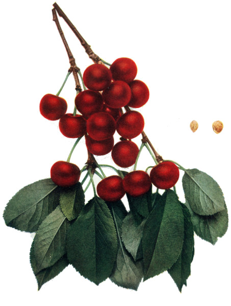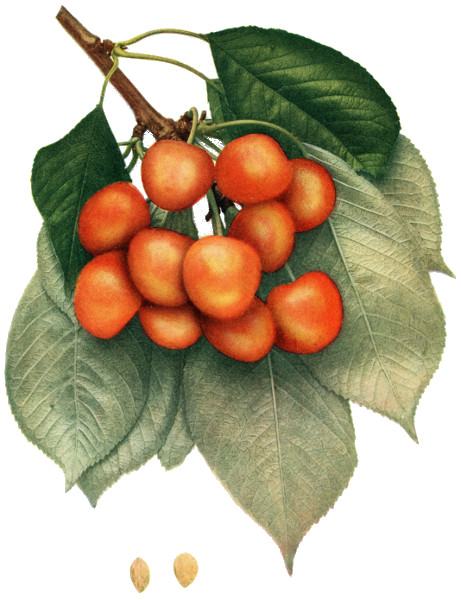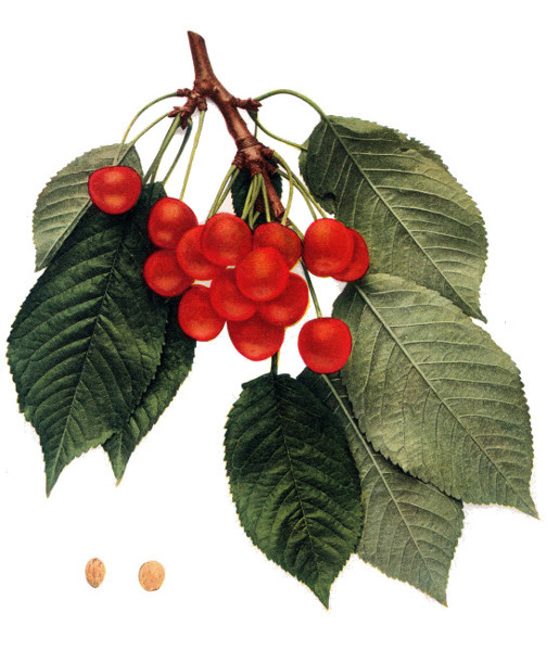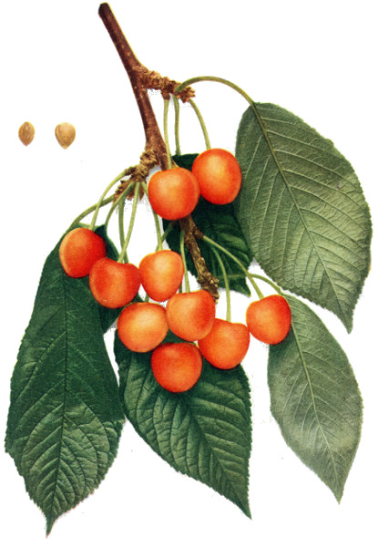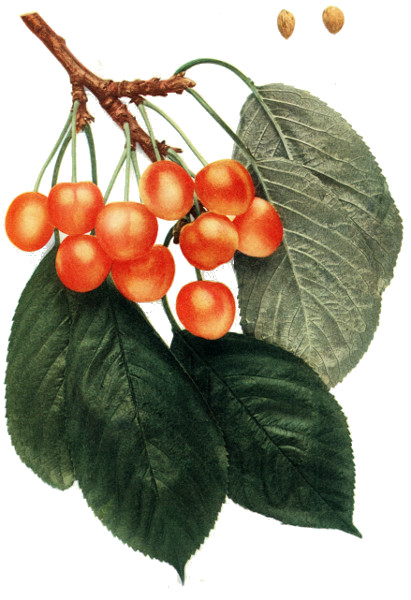 45 "So the good species and their varieties are perpetuated and multiplied by grafting upon the Merisier, upon the Cerisier with round fruit, and upon the Cerisier de Sainte-Lucie [Mahaleb]. All the Cerisiers succeed well upon the Merisier and it is the only subject which is suited to the high-headed trees. It has the advantage of not sending forth any or very few suckers. The Cerisier de Sainte-Lucie has the same advantage. It receives very well the graft of all species of cherries and adapts itself to the worst soils." Duhamel Traite des Arbres Fruitiers 1:197. 1768.