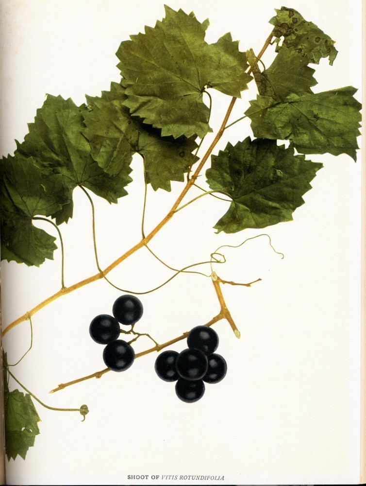 [210] In the eastern portion of the Southern States, the section where this variety originated and where it is still most largely grown, Scuppernong is applied only to a white variety of Vitis rotundifolia. Unfortunately in many portions of the South and in the North, the word Scuppernong is apparently taken as meaning a grape of the southern Fox or Rotundifolia class; thus we find some writers using such contradictory expressions as White Scuppernong, Green Scuppernong, and Black Scuppernong. In the South, at least, this use of the term appears to have arisen in the last fifty years, usage previous to that time being practically unanimous in recognizing that the Scuppernong was the white Rotundifolia which had been selected at an early day for cultivation on account of certain superior cultural characters distinguishing it from the rest of the species.