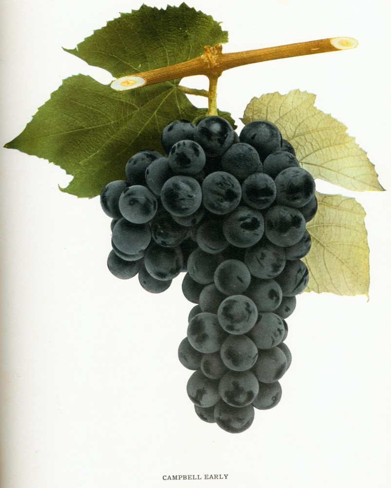 [170] George W. Campbell was born in Cortlandville, New York, in 1817. The family moved to Ohio in 1821. In early life Campbell was a printer and editor, as his father had been before him. In 1849 he moved from Sandusky, Ohio, to Delaware in the same State and it was in the latter place that his attention was first turned to horticulture as a livelihood, although he had been interested in it as an amateur much earlier. He was a continuous member of the American Pomological Society from the time of its organization in 1850 until his death. He raised thousands of seedling grapes, of which the following were given names: Campbell Early, Concord Chasselas, Concord Muscat, Juno, Lady, Purity, Triumph, White Delaware. All of these are practically obsolete in the North except Campbell Early and Lady.