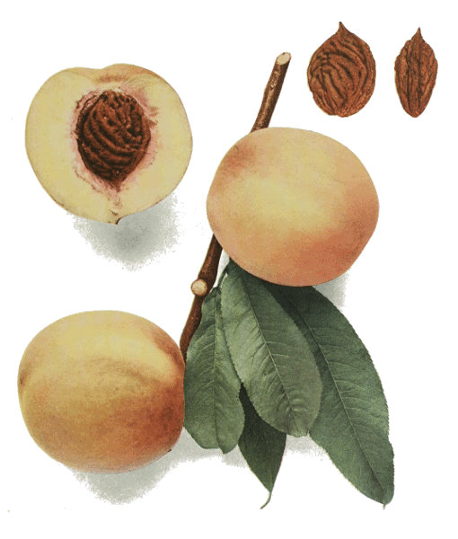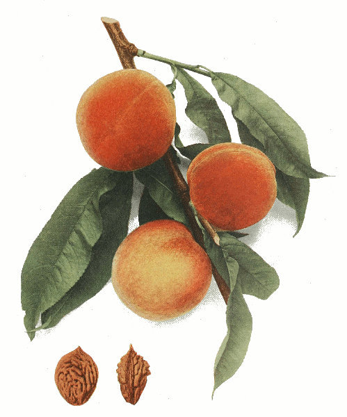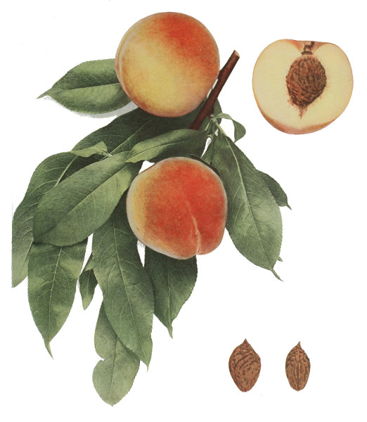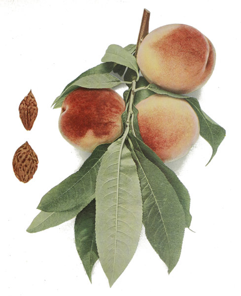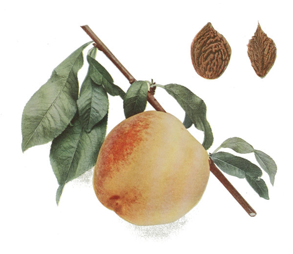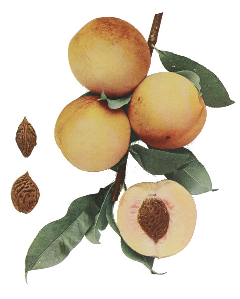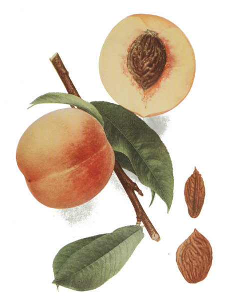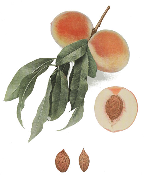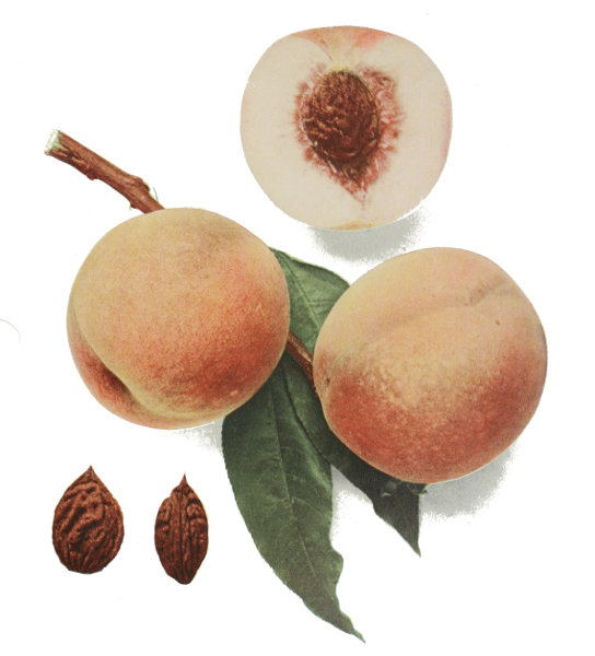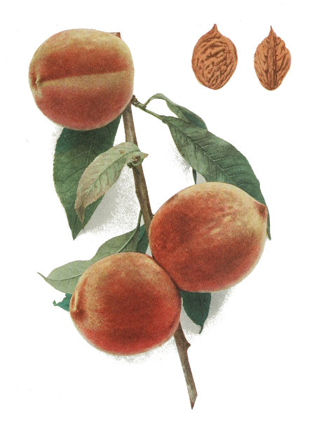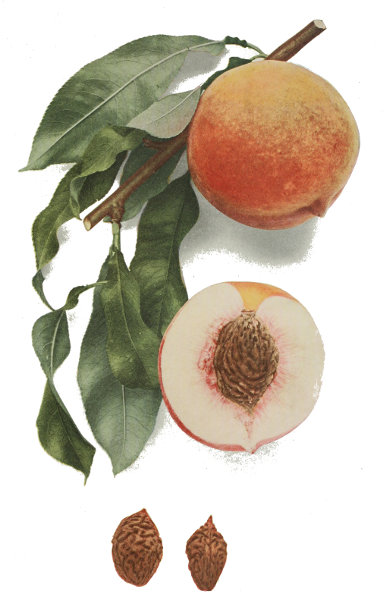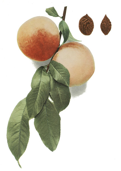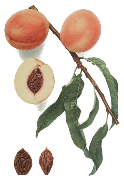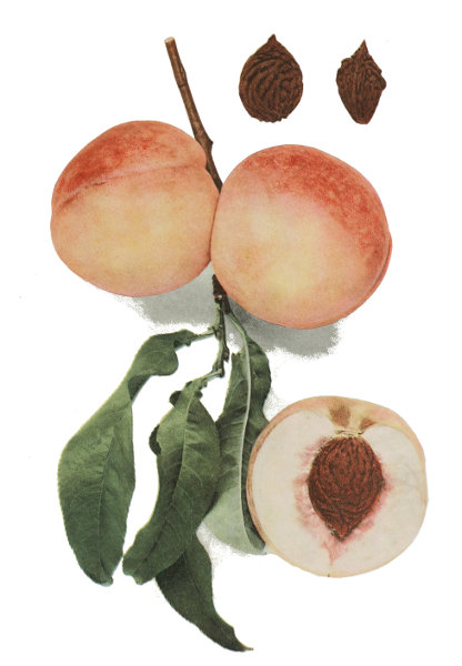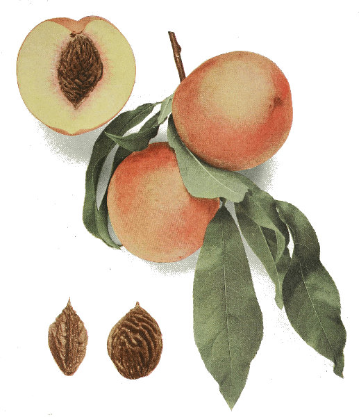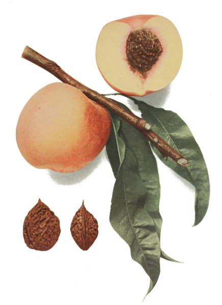 In all of these fruit-books it has been difficult to decide what varieties merit color-plates and full descriptions. Briefly, the choice of sorts to be illustrated and described in detail has been determined by the following considerations: (1) By the value of the variety for home or commercial orchards; (2) the probable value if the peach is a new sort on probation; (3) its desirability as a parent in breeding new peaches or to show combinations of varieties, to illustrate new characters, or to show the range in variation—in a word to enlighten the peach-breeder; (4) not a few varieties are described and illustrated to show the trend of peach-evolution—for their historical value; (5) to show relationships of varieties.