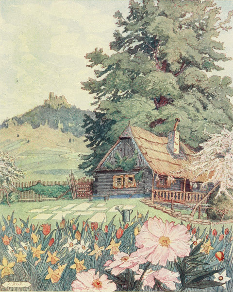 In a little wooden hut within the shadow of the forest and close to a noisy brook, a poor widow dwelt alone. She passed her days gathering and drying plants and herbs, from which she was forever making strange simples which proved very helpful to the village people and their cattle when illness came upon them. But the villagers only came to visit her when they had need of her medicines, and these had such wonderful power to cure that it was whispered about the lonely old woman to be a witch.
