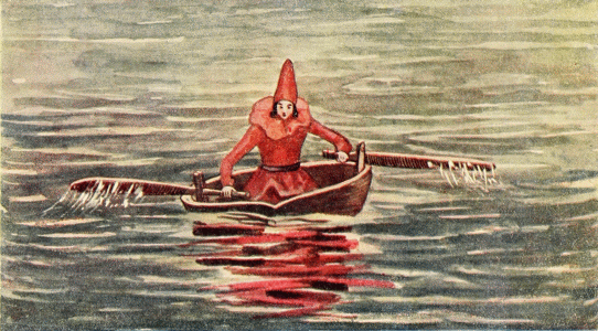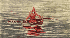 Instantly, Little Tom knew where he was, for his parents had often told him of his christening and how kind the Godmother was to them all; so he continued to row with all his might, hoping that his Godmother would return in time to save him.