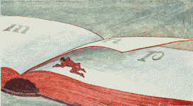 The sky, in the meantime, was covered with clouds, a gentle wind came up, and small flakes began to fall from the darkened sky. On the plain far away, Tom saw a reddish leaf and noticed how it was running, as if blown by the wind straight towards them. It seemed strange to him. The Hamster became confused, as he looked around; he looked once more, then doubled with fright into the snow, whispering, »The Queen!«