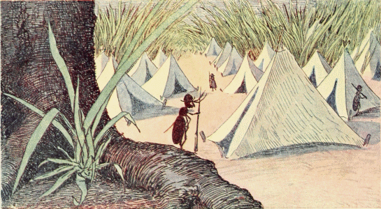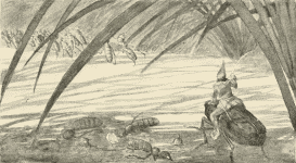 Tom realized that they would not be able to go any farther that day and[Pg 128] dreaded the night under the open sky. He covered Chrysomela with a briar leaf and seated himself beside her. In a little while, as he was very tired, he fell asleep.
