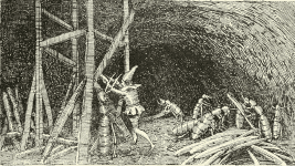 There had been a keen frost and the fields were covered with snow, which sparkled in the sun. The snow was also away up to the eaves of the chapel, while from the blackberry stalks over the well, hung transparent icicles. The herb woman pushed aside the bushes and, crawling into the well, dug away the rubbish until she had uncovered the fifth circle of stones with which the well was lined.