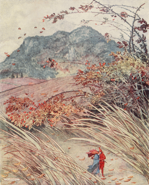 Suddenly, he awoke. Already, the darkness was stealing over the county, the evening wind was whistling through the wild briar and playing with the leaves. Tom wanted to protect Chrysomela. He put his arm around her waist and wrapped a rolled up beech leaf around her, but the strong wind caught it up and, whirling it with many others, carried them through the air until they fell into a deep furrow.