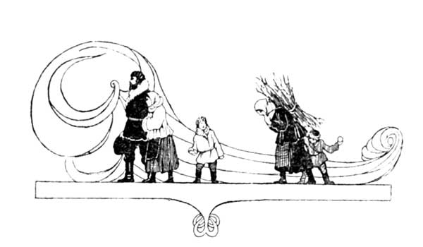 Anjuta felt that for nothing in the world would she go back alone. The wood from which she[Pg 180] had happily emerged inspired her afterwards with such fear, that she began to run, and sped over the snowy plain like an arrow. A strange sight brought her to a standstill. Four riders with long lances in their hands and guns slung across their backs rode by the side of a sledge, in which sat a stout man. He looked very grand, with his high turned-up fur collar and a cap with a red band round it. She had only once seen such a fine gentleman before, when she was begging with her mother in the town. The joyful consciousness of having the wood happily behind her so braced her up, that she felt no embarrassment before the stranger.