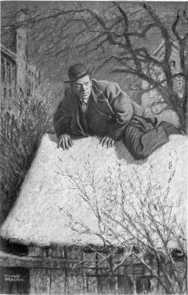 Twilight deepened; the snow fell softly, silently, until it became a ghostly mist that hid the town—hid the very houses on opposite sides of the street, and through this flurry Bill shuffled with unerring instinct, dragging Mr. Shrimplin from lamp-post to lamp-post, until presently down the street a long row of lights blazed red in the swirling smother of white.