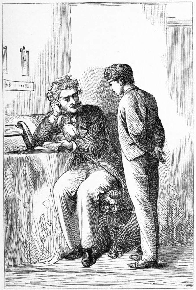 I went along a passage on which the doors opened, and crossing the hall, knocked at Mr. Poynter’s study door. As soon as I had knocked I heard Mr. Poynter say, “Come in;” and, opening the door, I found him sitting in his arm-chair, with my father’s letter in his hand. He motioned to me to sit down in a chair opposite to him, and said,—
