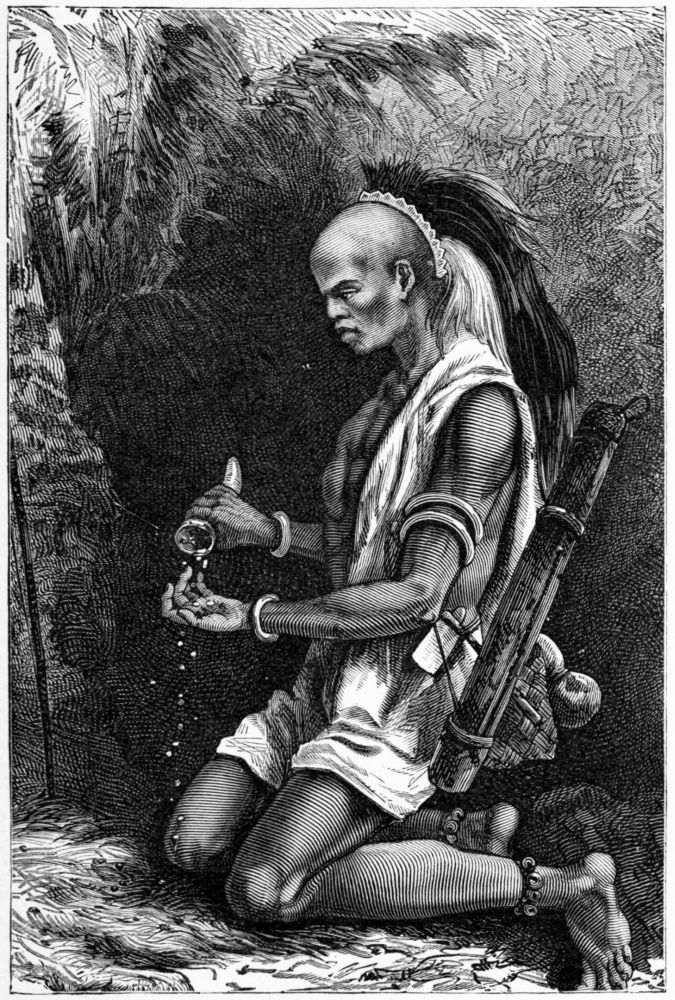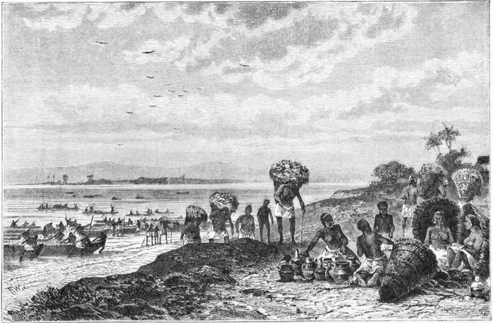 It was curious to see how the people made the salt by simply boiling the soil in earthen pots, and then straining the water off the mud through rough sieves made of leaves and grass, and evaporating the brine. Usually the first filtration was not sufficient, and the process had often to be repeated four or five times before a coarse brown salt which looked like dirty sand was obtained. I was much astonished to find that though the whole country was impregnated with salt, the streams and rivers did not taste of it, but were perfectly fresh and sweet.