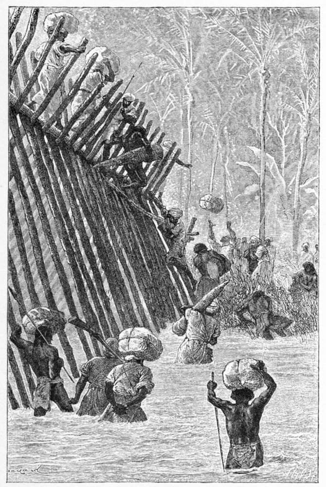 After a short halt for the purpose of cooking some food and resting, the iron-muscled Wanyamwesi shouted out that it was time to be on the march again, and though I know I felt tired and weary, there was no lagging. Soon we were rapidly descending the hillslopes towards a largish river which we saw lying below us. I asked how we were to cross this, as it seemed too broad to bridge; and as there were no signs of habitations near, we could not hope to find canoes like those in which we had been ferried across the Malagarazi.