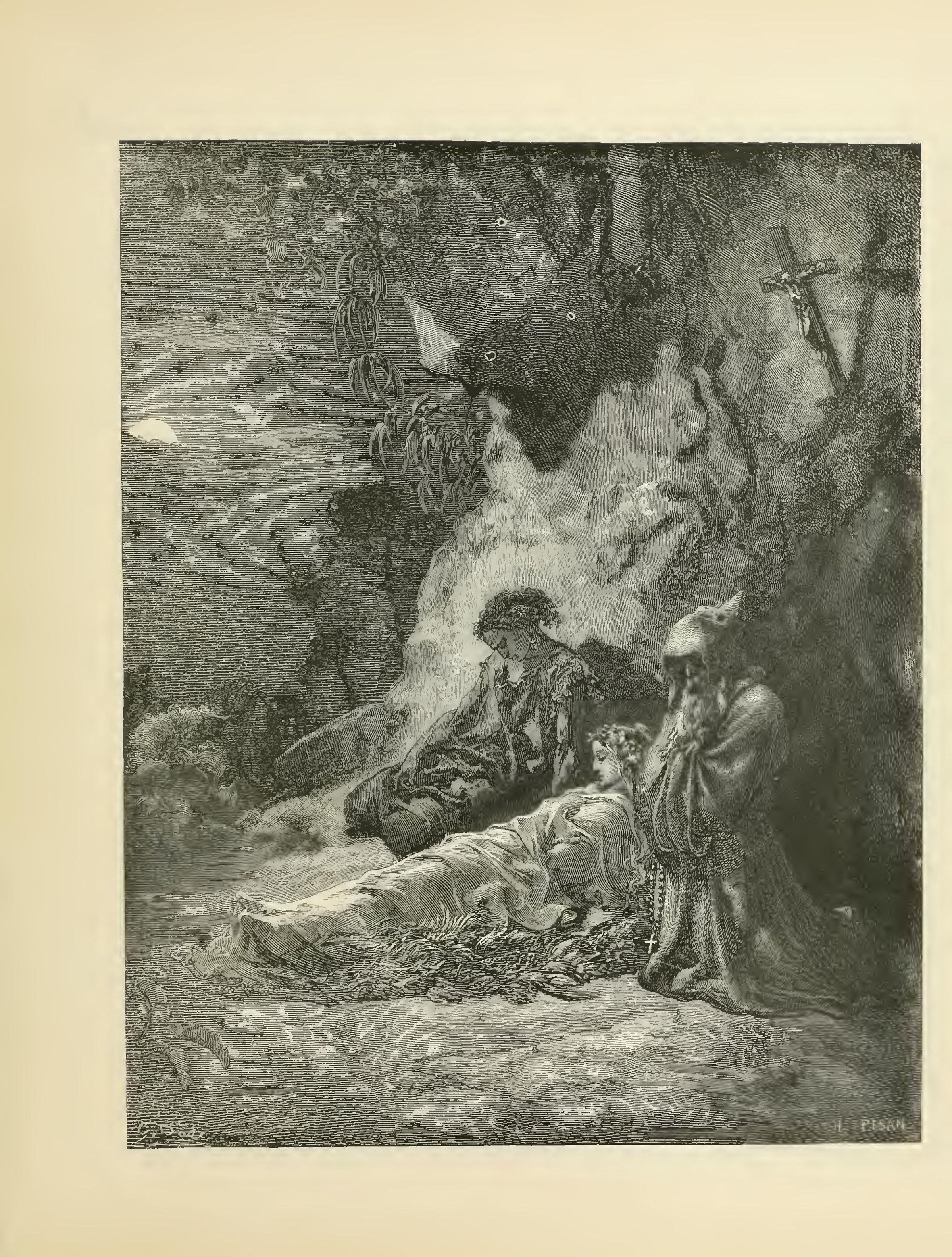 “Nevertheless, the hermit redoubled his zeal. With the torch of religion in his hand, he appeared to be guiding Atala to the tomb, to show her its secret wonders. The humble grotto was full of the grandeur of this Christian agony, and the heavenly spirits were no doubt attentive to the scene, in which Religion had to struggle alone against Love, Youth and Death.