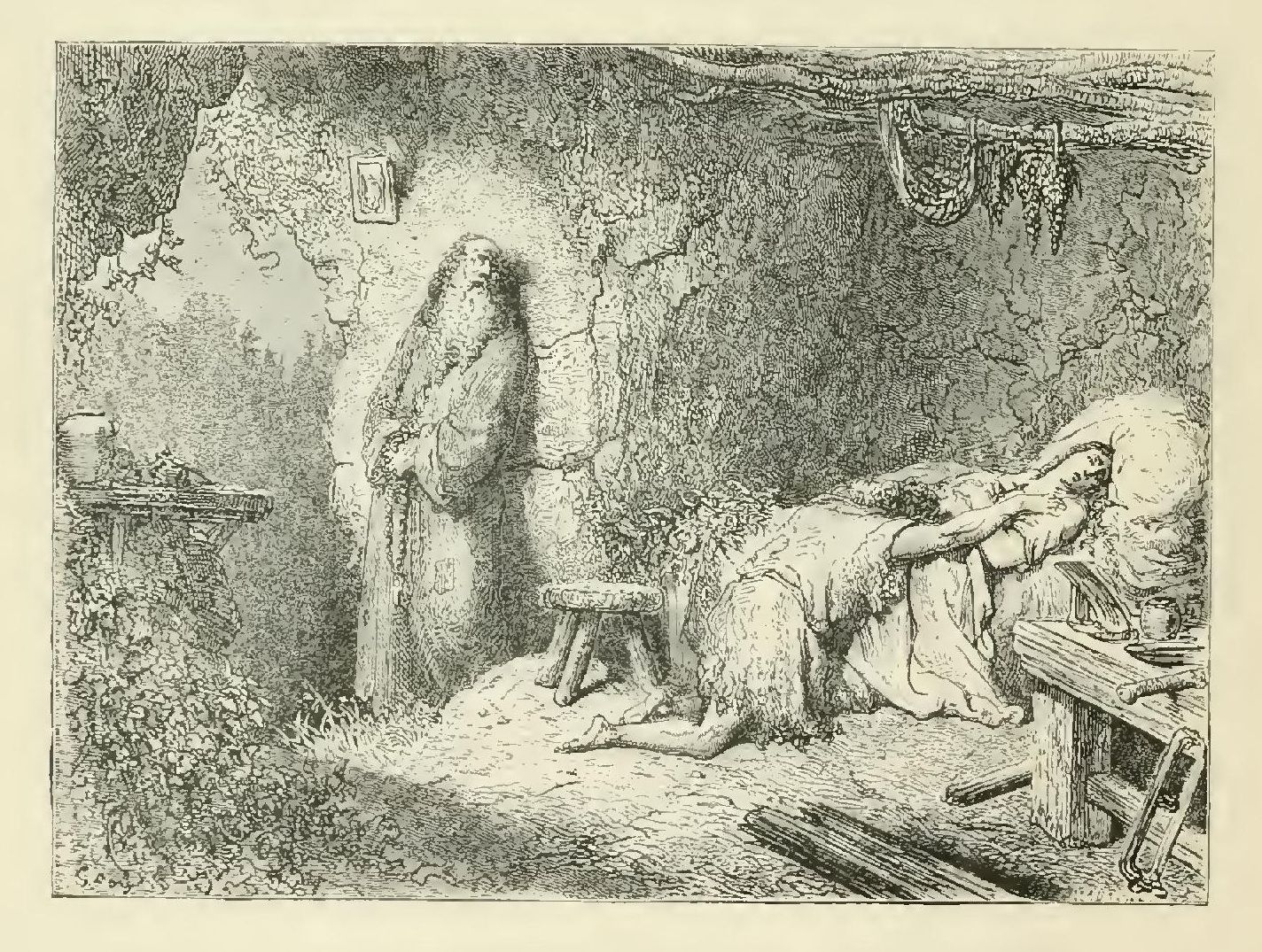 “‘Let us be stirring; let us be stirring,’ said the courageous father, as he rose to light a lamp. ‘We are losing precious moments: like intrepid Christians, let us brave the assaults of adversity; with the cord about our necks, and with ashes upon our heads, let us throw ourselves at the feet of the Most High, to implore His clemency, and to submit ourselves to His decrees. Perhaps it may still be time. My daughter, you ought to have told me of this last night.’