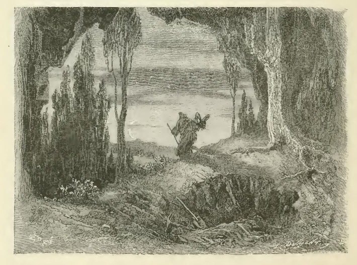 “Thus sang the old man. His deep and irregular voice went rolling through the silence of the desert. The name of God and of the tomb issued from all the echoes, from all the torrents, and from all the forests, and the Groves of Death seemed to be murmuring a distant chorus of the departed in reply to the hermit’s sacred chant.