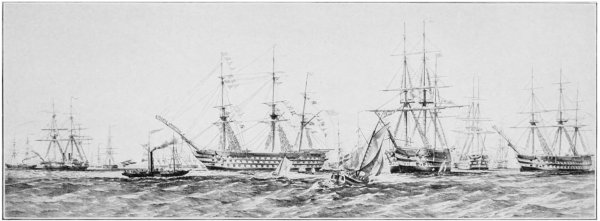 13 Spithead, at the time I joined my ship, afforded an interesting spectacle. Men-of-war of all classes were gradually collecting, and the dockyards were very busy; but we were short of men—so much so that all available coastguard-men were requisitioned to complete our crews, which in those days were for the most part collected from the streets.