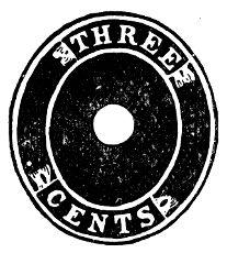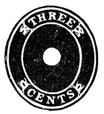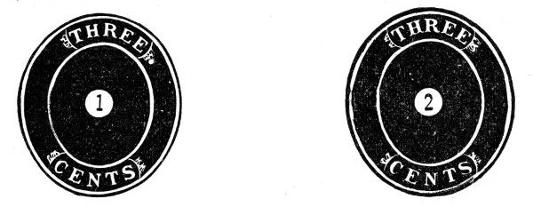 Variety I:—"CENTS" close to outer oval line. "CE" on level and far apart. "C" quite a distance from curve. "N" and "T" wide apart at base. "S" close to curve. The final "E" of "THREE" is somewhat lower than the first "E", dips to the right, and is close to the curve. "T" of "Three" is also close to curve. Many of the white envelopes are on horizontally laid paper.