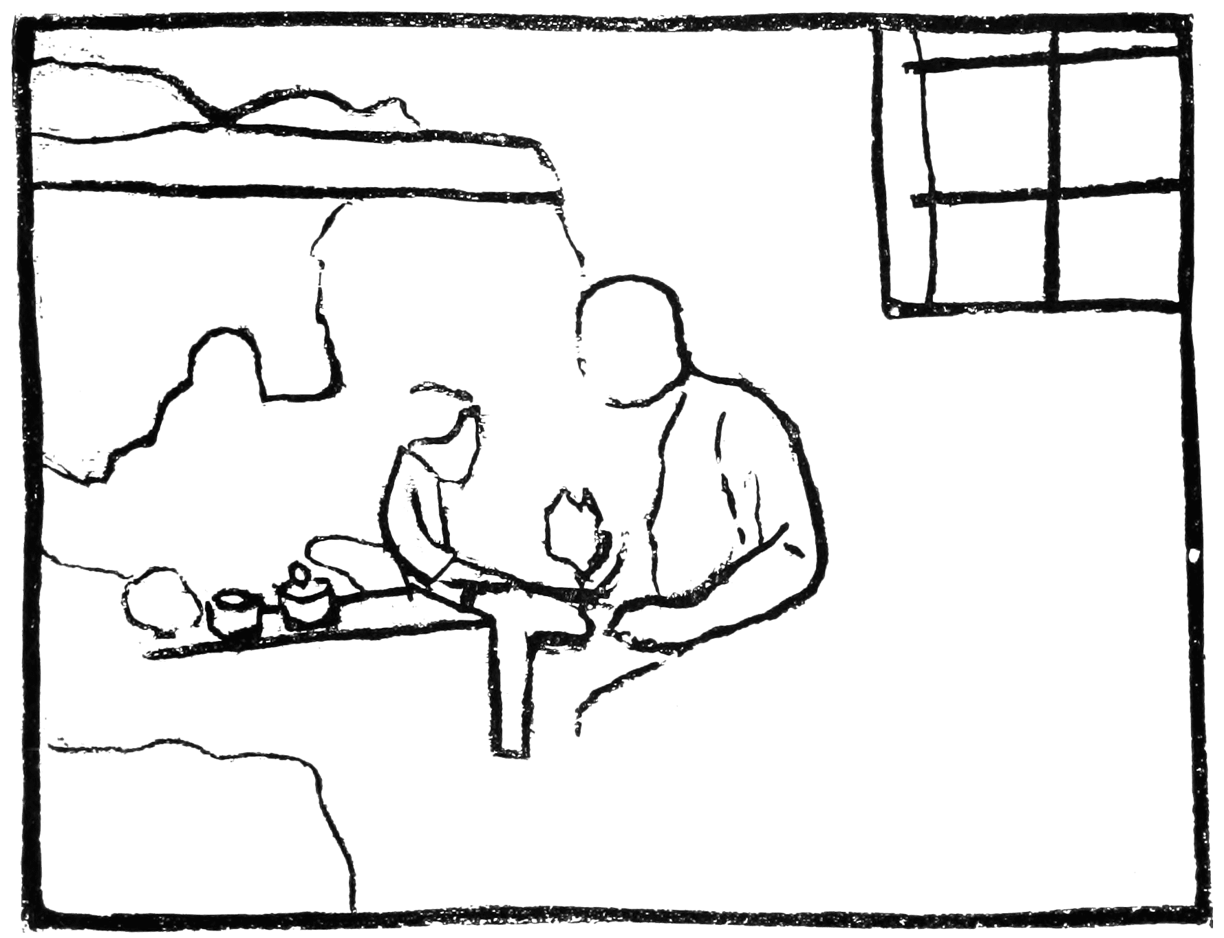 Furthermore, the eye-movement over reading matter should be considered with reference to the eye-movement over the adjoining pictures. For example, after the title has been shown long enough to allow the normal reader to get to the end of the text, his eye may be at a point near the lower right corner or at the right side of the frame. Then if the following picture does not attract attention at this portion of the frame, a slight shock is caused by the necessary jump to a remote point of attention. A similar difficulty may arise in connecting a preceding picture with the beginning of the title.