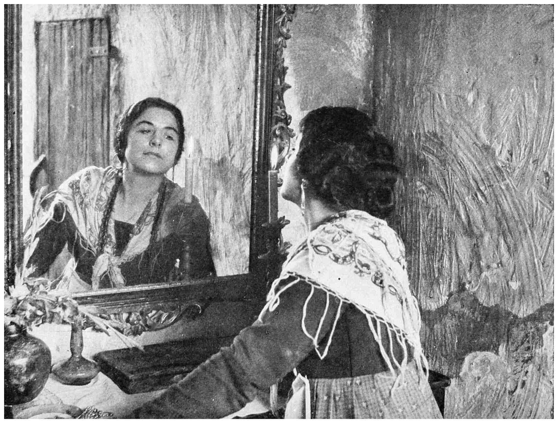 The frequent abuse of the close-up, for example, is often due to the mistaken idea that an actor’s facial expression is the sole means of representing emotion. To think that dramatic pantomime consists of making faces is just as foolish as to think that dancing is merely a matter of shaking the feet and legs. It is really as important for a screen actress to be able to show grief with her elbows or knees as for a dancer to have rhythm in her neck. The “star” actress, therefore, who insists on several facial close-ups per reel reveals a lack of capability in her own art, as well as an over-developed appreciation of her own looks. The further objection to the close-up is that it takes the player out of the picture. For the moment all the setting, all the other players are shut off from sight.160 It is as though a painter, while entertaining a group of friends with a view of a newly finished work, were suddenly to cover the whole painting except a single spot, and then to say, “Now forget the rest of the picture, and just look at this spot. Isn’t it wonderful?”