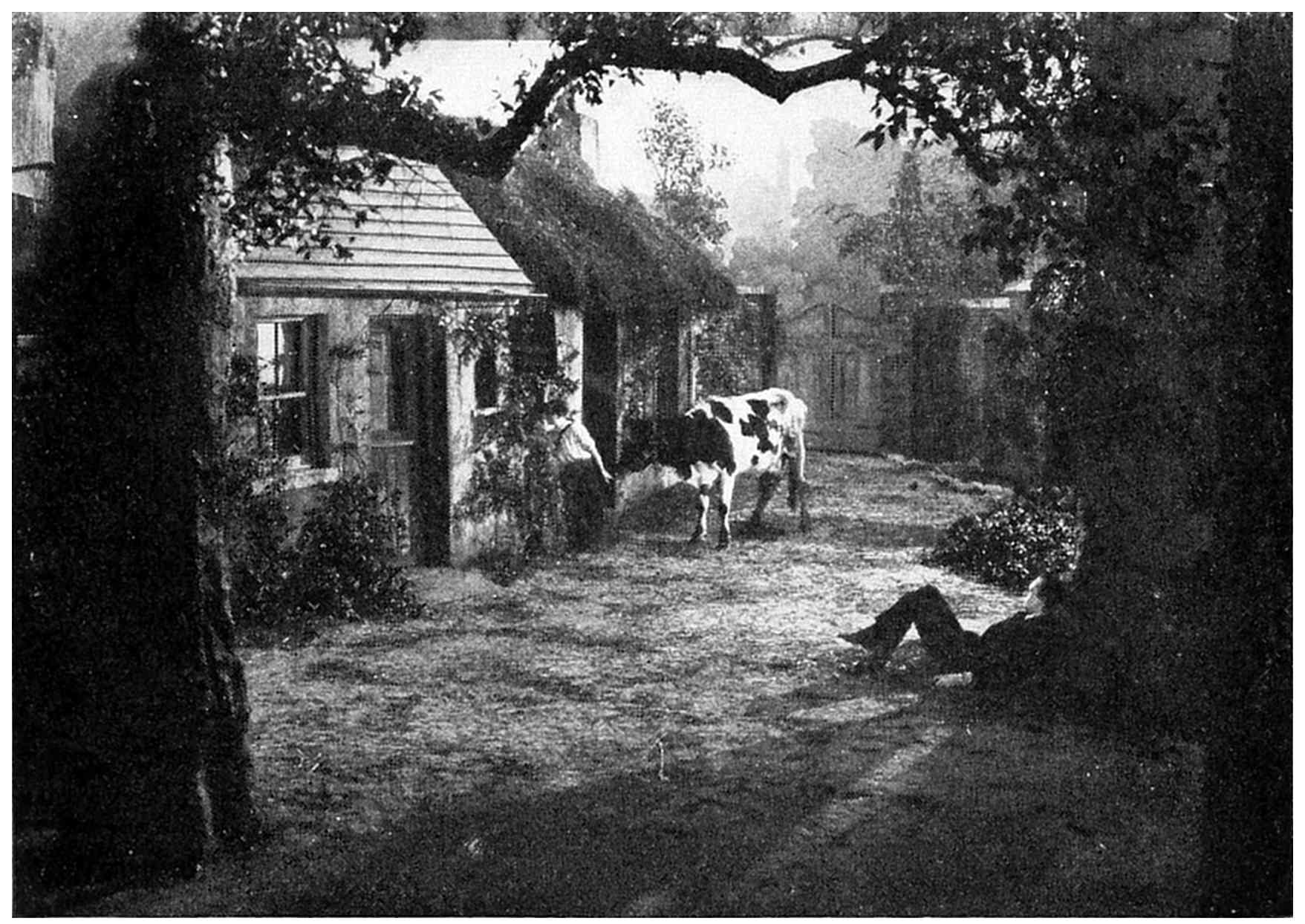 Here we have struck the measure of the motion picture’s possibilities as a new art. The masses who pay for tickets have the situation entirely in their hands. Photoplays are improving year by year principally because the public wants better photoplays year by year. When the movies were new, people were satisfied with novelties, mechanical tricks, sensational “stunts,” pictures of sensational people, pictures of pretty places, etc., but, although they appreciated what was called good photography, they expressed no craving for genuine pictorial beauty. Later on came the craze for adaptations of popular novels and stage plays to the screen. This was really a great step forward. The motion picture was no longer a mere toy or trick, but was being looked upon as a real art medium. The public had developed a taste for the exciting, clearly told story, and this demand was satisfied by hundreds of excellent photoplays—excellent, at least, according to the standards of the day. Yet the “fans” might have asked for more. They got the story of a famous novel or play, with fairly well acted interpretations by screen folk in proper costumes, and with scenes and settings that usually answered to the descriptions in the literary work adapted; they even got, here and there, a “pretty” view or a chance grouping of striking beauty, but they did not regularly get, or ask for, the kind of beauty which we are accustomed to find in the masterpieces of painting. But taste has been developed by3 tasting, and at last the craving for pictorial art has come.