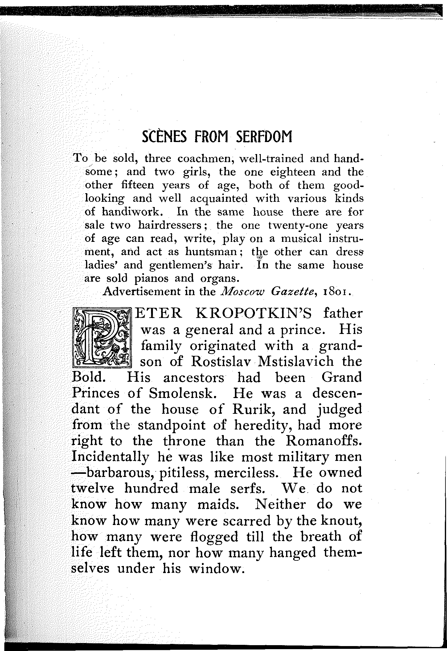 SCENES FROM SERFDOM