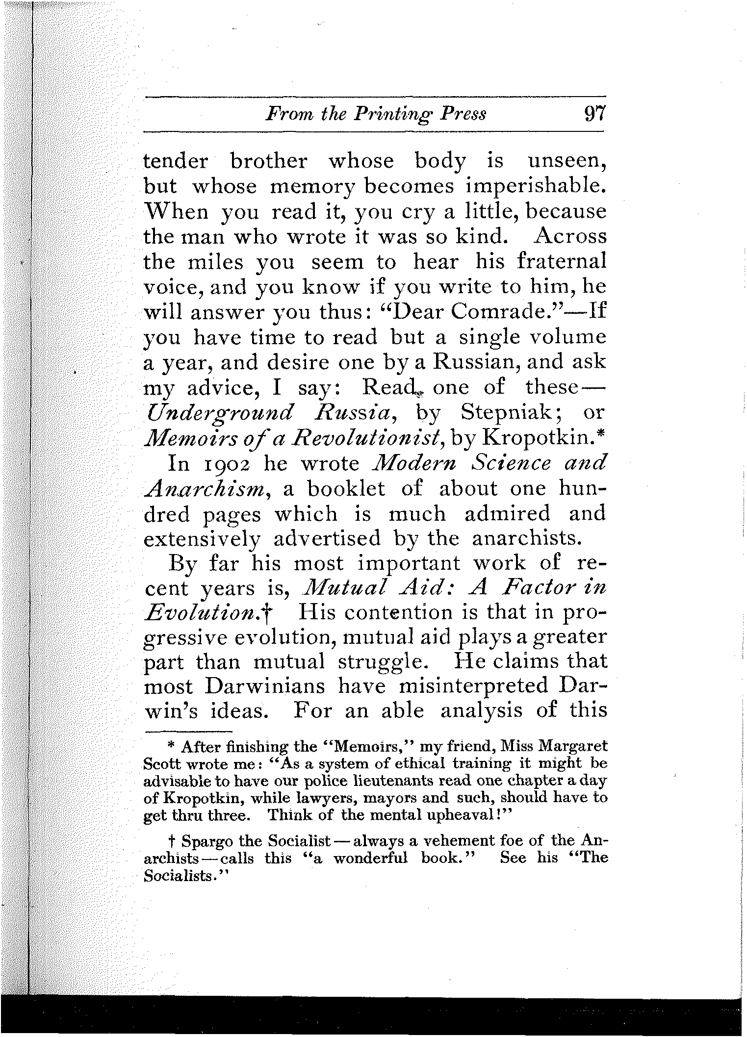 As soon as I received your book, my wife read it to me from beginning to end, starting with loving interest and ending with sympathetic tears. Then I read it again myself. Then I called upon my friend Fred Heath, editor of "The Social Democratic Herald," and talked to him about my "William and Mary," and together we hied to the public library and made a search for all we could find about the lives of these interesting friends.
