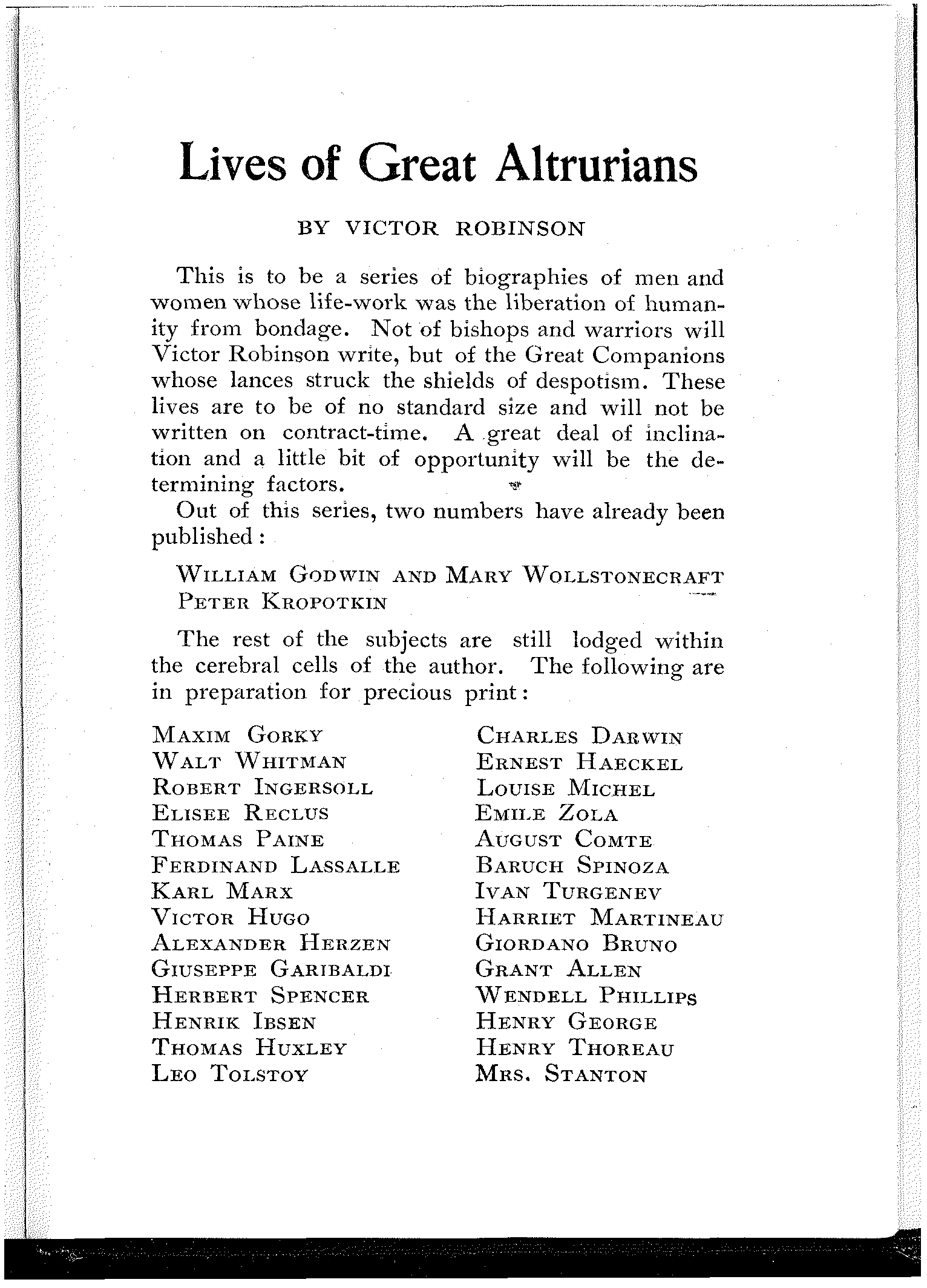 LIVES OF GREAT ALTRURIANS