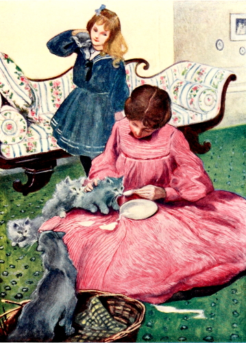 When Auntie May came up to find her clothes for going out, she discovered us. Mother purred at once to disarm her, for it was known that Auntie May could not manage to be really cross with dear Pet for long, IF she purred.