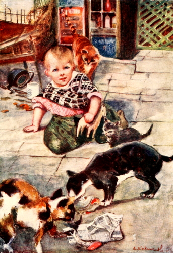 'Oh, Auntie May'—(all her sentences began like that)—'this kitten, who was so late with his eyes, is at any rate the first to purr! Purr, darling, purr!'