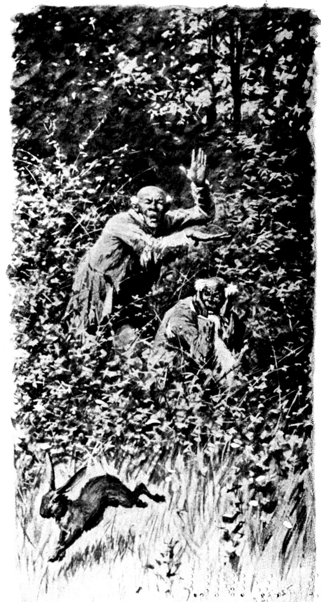 Then Unc’ Caspar, in his dream, fixed his gaze on ’Liza, and drew her with his eye; and, swinging her arms around her head three times, she stooped and reaching across the pit, plucked three white hairs from Unc’ Caspar’s beard; then, catching the long end of the beard with both hands, she swung across to the other side and laid her hand upon his arm. Amaziah looked, then howled three times, and loped away in the form of a yellow dog.