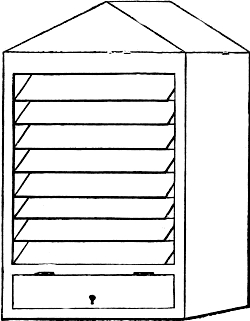 Our organ factory, then (with some such plan in our head), must be a roomy, well-lighted, perfectly dry workshop, furnished with a fire-place or stove[Pg 3] for the glue-pot, with drawers or cupboards for storing away skins of leather and other materials not in constant requirement, and with shelves on which pipes may be stowed without danger of rolling off. It must not be a mere shed or hovel in which we might mend the cart or the wheel-barrow, and it should not be far from our dwelling-house, if we are likely to work at our serious undertaking in the winter evenings.