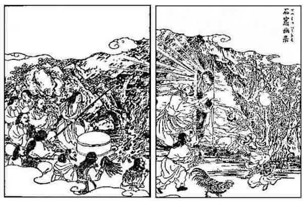 | The Sun-Goddess issuing from the Rock-Cave of Heaven | 98-99 |