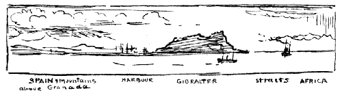 | Orpheus and the Argo and the Sirens in heavy weather. Down the Portugese Coast. High Art in the Engine-Room. Our People going East. A Blustery Day, and the Straits of Gibraltar. Gib and Spain, and "Poor Barbara." | 19-26 |