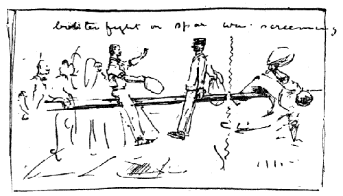 | About the Crowd on Board, and the discomfort of a voyage first class — British types — Reflections on the Deck and on the Sea — of Sky, and People, and of things in general. A P. & O. yarn, Old Junk, or Chestnut. Respectability and Art. It gets warm — The Punkah Infliction. Egypt in Sight, and the Nile Water. | |