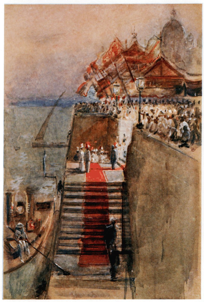 "The Blairin' trumpet sounded far," and the Prince comes over the sea, and lands at Rangoon — Receptions and processions; pandols, shamianas; and Royal Tomasha — Illuminations at night on the Lake, and the Royal Barges — Song about Our King Emperor — We start for Mandalay by river-boat up the Irrawaddy. | 245-250 |