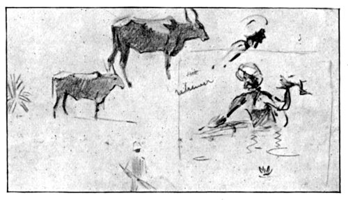 Off again — In a cargo steamer up river to the end of the Empire this way — The markets on board and Burmese life — Changing views, flowers, sunlight and swirling river — Fishing — Geese — Painting — Cascades of beautiful people, Snipe-shooting, and more fishing. | 294-302 |