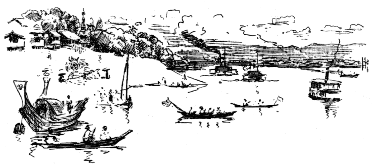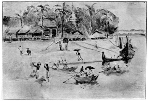 The shore at Mandalay — The Queen's (Supayalat) golden Kioung or Monastery — Street scenes — THE ARRAKAN PAGODA, and scenes for a Rubens or Rembrandt — The Mecca of this Eastern Asia — Burmese women bathing — A Burmese harper — The Phryne in hunting green kirtle — Mingun and the pagoda that was to have been the biggest in the world, and the 90-ton bell — Mr Graham's house — Life on S.S. "Mandalay" at the Mandalay shore — King Thebaw's Palace. | 276-293 |