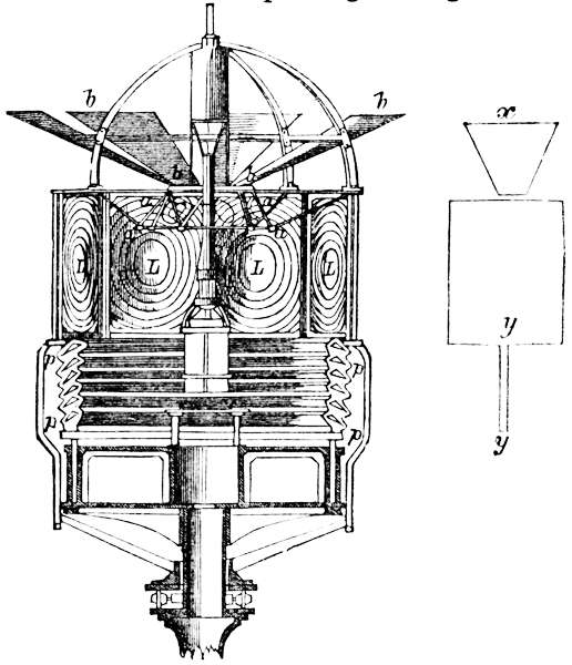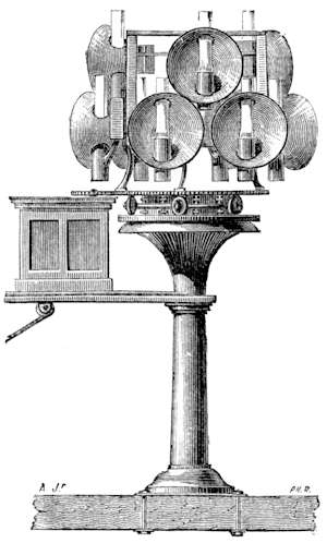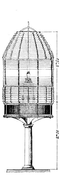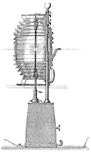 [18] To be more exact than have been the majority of authors who have written on lighthouses, we must add that a small revolving apparatus, with three reverberators (probably with spherical shells), had been planted at the mouth of the port of Marstrand, in Sweden, prior to 1783. The French engineer, however, had thought out the invention for himself, in ignorance that it had been elsewhere realized, and his was the merit of imagining a system so complete and so rational in all its parts, that nothing has since been added to or taken from his conception.