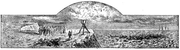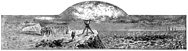 We are apt to look upon the lighthouse as completely a modern invention, but a little reflection would convince us that the early navigators, in their arduous struggle against the ocean, could not have failed to establish some sure indications by which to guide their adventurous course. Undoubtedly, the first rude signal would be no more than a huge fire blazing on the wave-washed promontory, or on the summit of hoary hill or grassy mound nearest to the more dangerous parts of the shore. But it can easily be conceived that the difficulty of keeping these[10] fires kindled on stormy nights would soon suggest to man’s ingenuity the idea of erecting a suitable structure for their shelter.