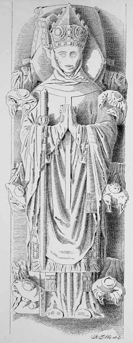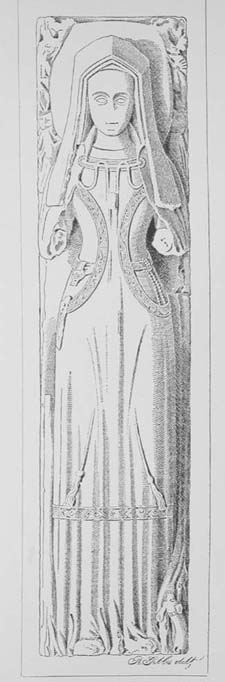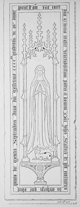 In the incised figure of the Archbishop's Mother, the lines are fairly perfect, except those forming the hands and face. These have been completed from the faint indications that remain.