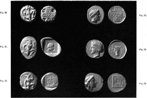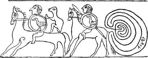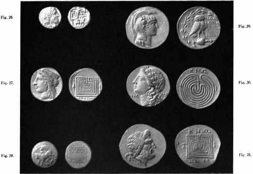 | The Meander and other Rudimentary Forms—Seal-impressions—Coins of Knossos—"Unicursal" Nature of the Knossian Design—Graffito of Pompeii—The Casa del Labirinto—Roman Mosaic Pavements—The Tholos of Epidaurus—Labyrinthine Structure at Tiryns—Greek Pottery—Etruscan Vase—The Labyrinth on Gems and Robes | 42–53 |