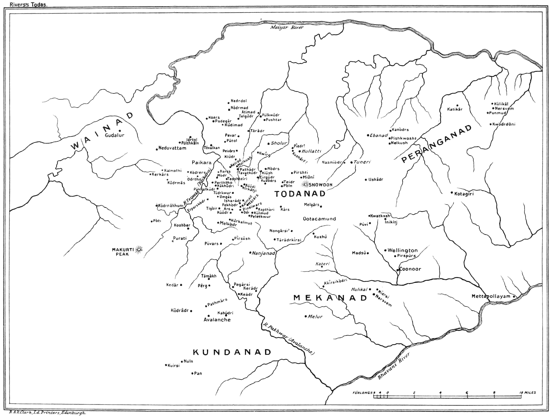 Most of the illustrations in the book are from photographs taken under my direction by Messrs. Wiele and Klein of Madras, and I am indebted to H. M. India Office for permission to make use of illustrations from “An Account of the Primitive Tribes and Monuments of the Nilagiris,” by the late J. Williamson Breeks (1873), and to Messrs. Longmans Green and Co., for permission to make use of illustrations from “A Phrenologist amongst the Todas,” by the late Colonel William E. Marshall (1873).