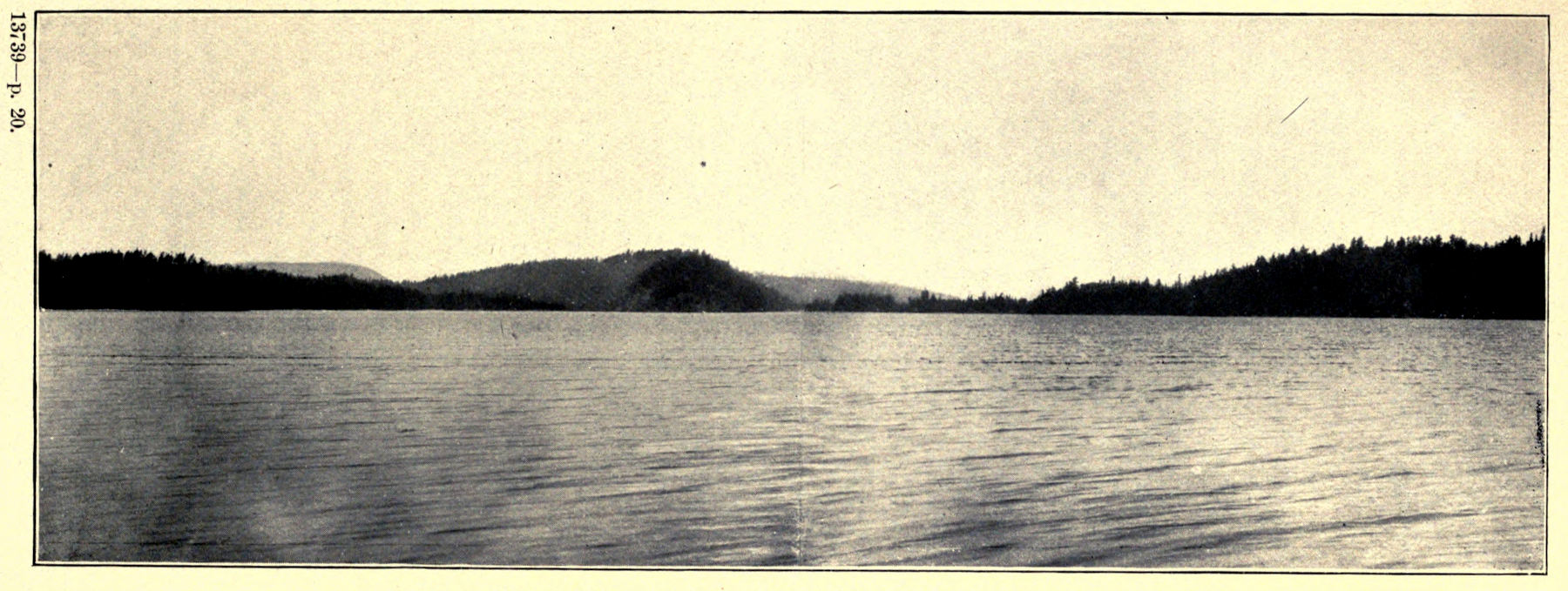 The Algoma-Nipissing boundary line was run in 1897 by Alexander Niven, O.L.S. These surveys, with representations of some of the larger lakes, had been compiled by the Geological Survey of Canada on a scale of 16 miles to one inch;[1] and on a scale of eight miles by the Crown Lands Department of Ontario. With these as a guide and summary of the existing geographical knowledge it was decided to make a micrometer and prismatic compass survey of both branches.
